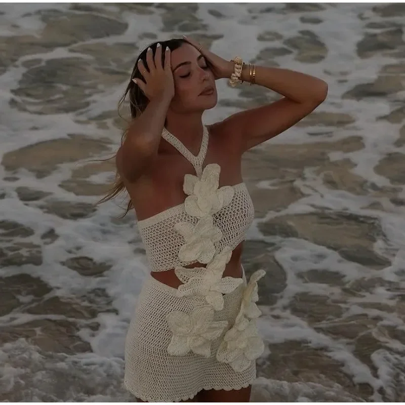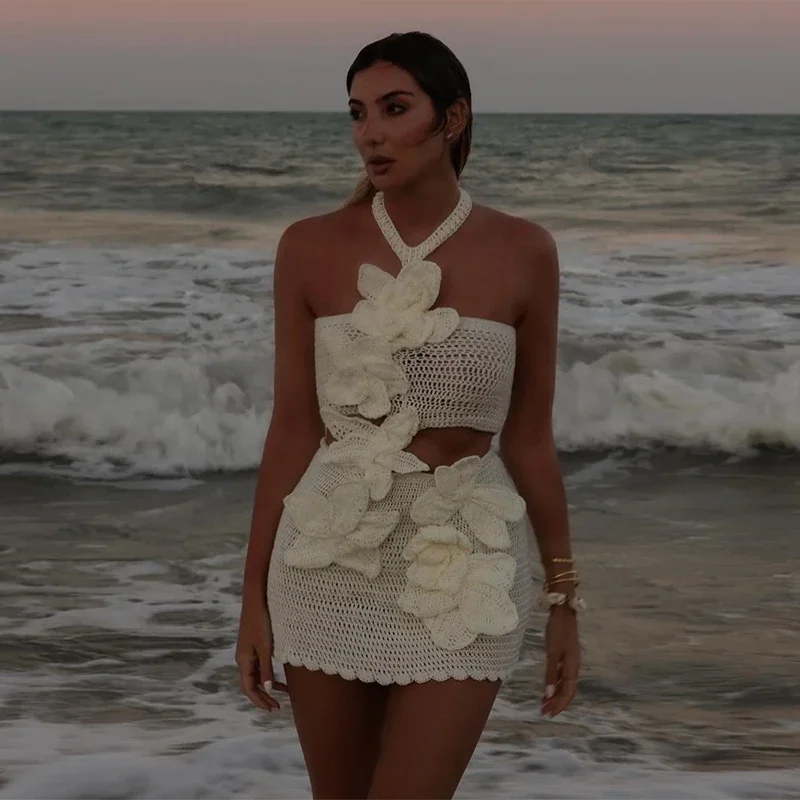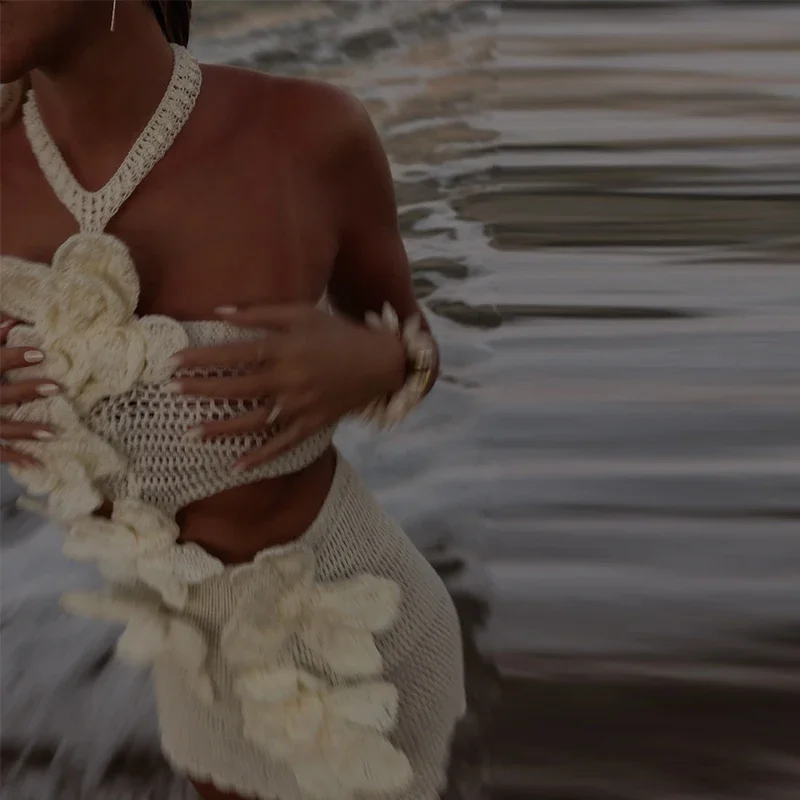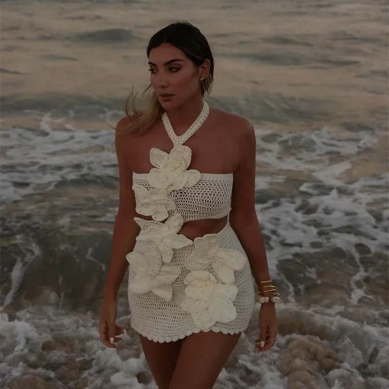 Este vestido curto é uma verdadeira obra de arte feita à mão, criado para mulheres que valorizam exclusividade, leveza e sofisticação nos dias de verão. Confeccionado artesanalmente em trama delicada, ele se destaca pelas flores aplicadas manualmente, que adicionam textura, charme e um acabamento único à peça.