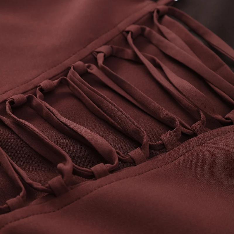 A bainha plissada acrescenta um toque de elegância, realçando o apelo estético geral do vestido.